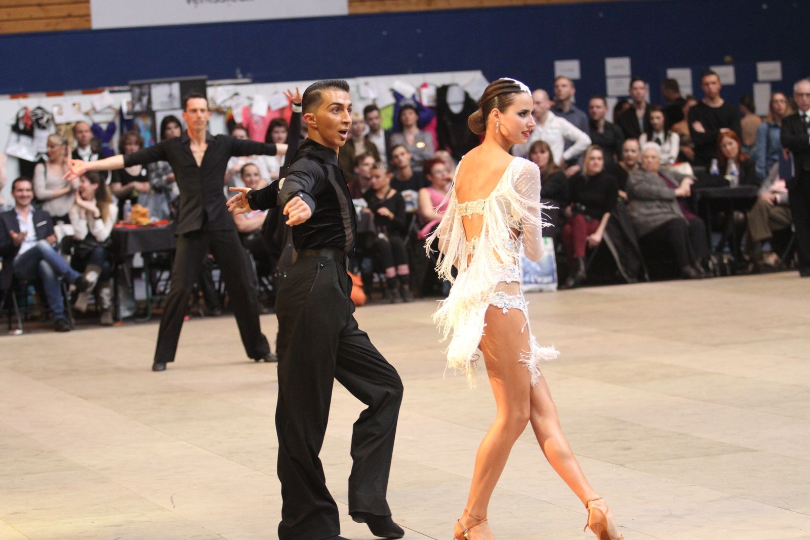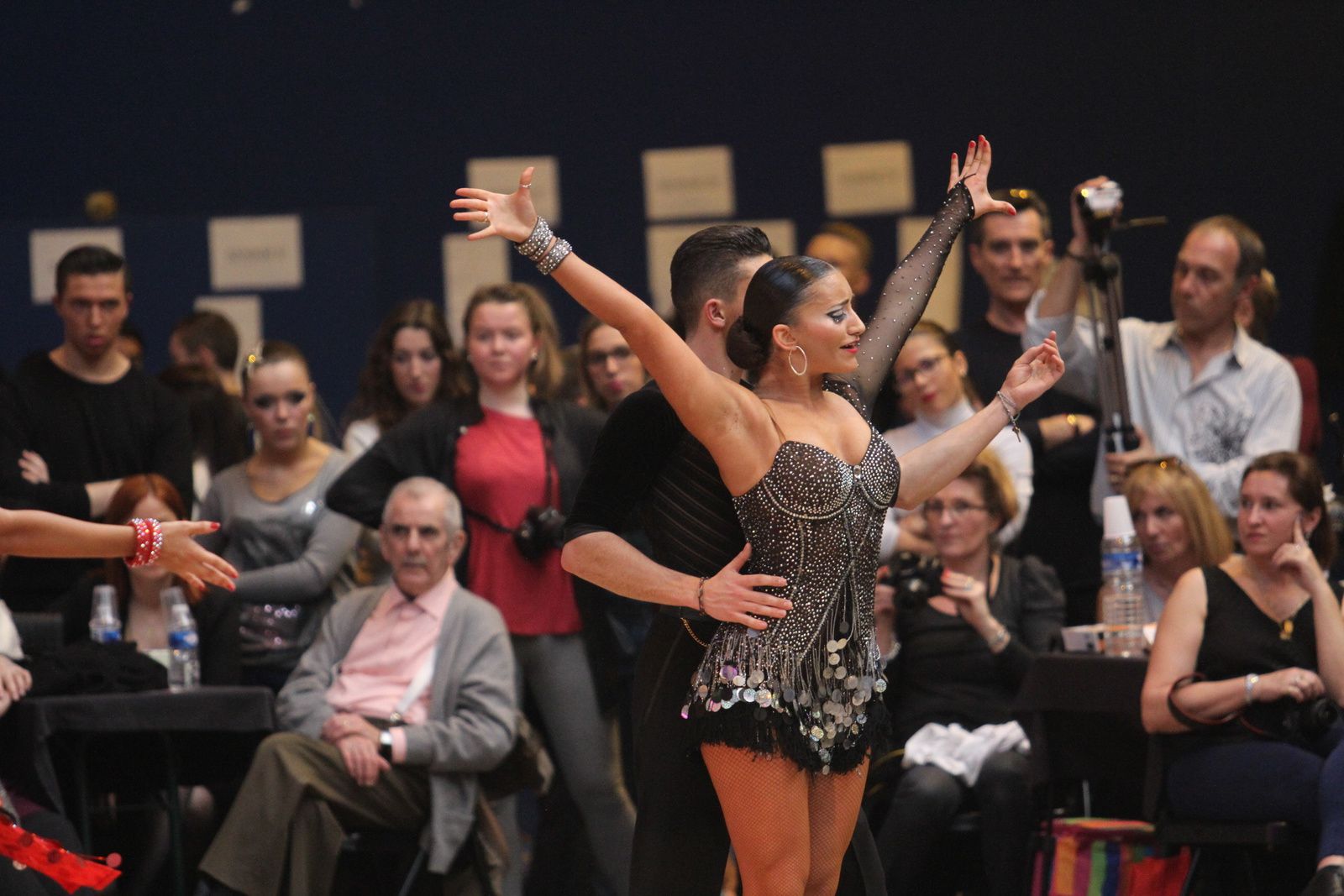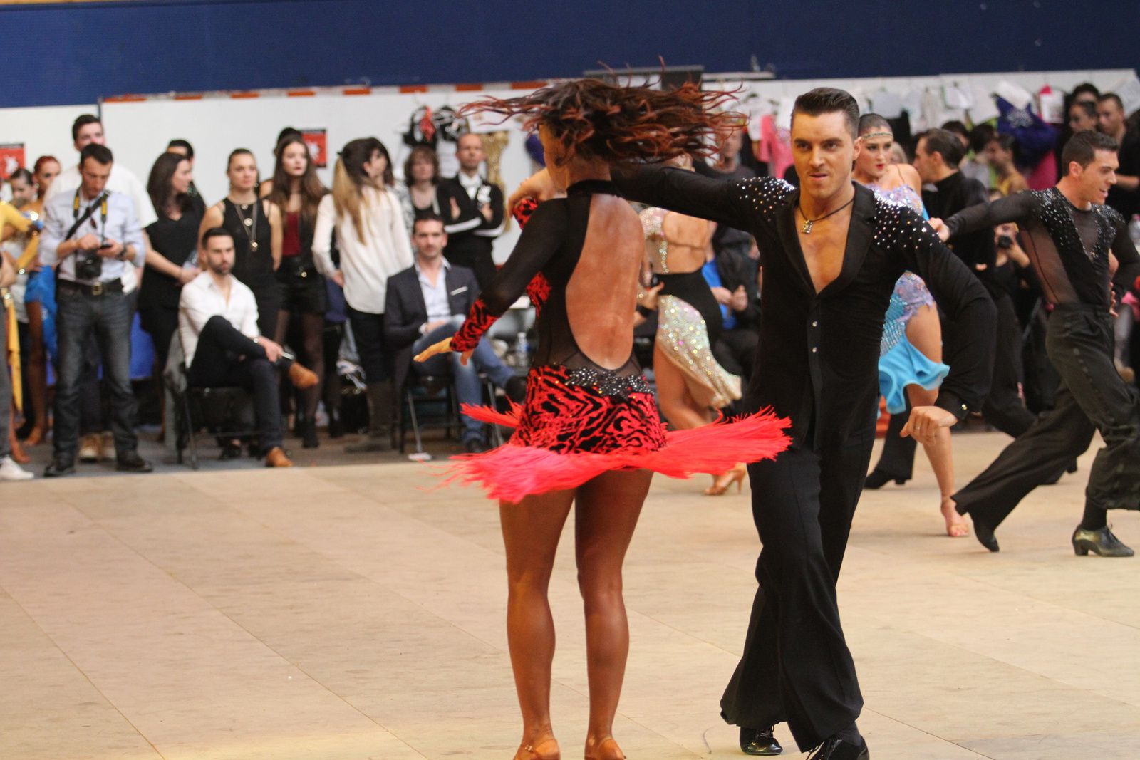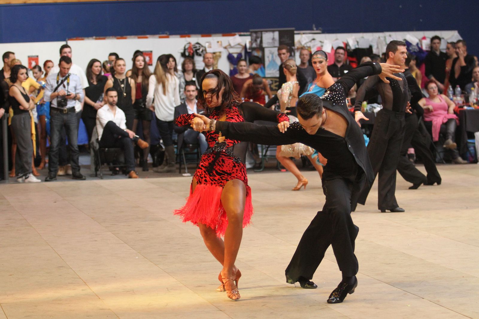 Il y avait foule ce samedi au gymnase Jacques Anquetil pour l’étape vénissiane de Coupe de France de danse sportive. 400 danseurs et deux fois plus d’accompagnateurs ont fait comme ils ont pu pour se frayer une place dans la tribune et aux alentours d’un immense parquet en bois installé par les organisateurs. Pour ce qui concerne la compétition, elle aura été acharnée. Il faut dire que de nombreux champions de France des catégories youth, juniors, espoirs, adultes et seniors étaient présents. D’où la difficulté à se qualifier pour les 6 finalistes de chaque discipline et deux types de danses : latines et standards. Dans cette épreuve nationale magnifiquement organisée par Lyon Métropole Danse Sportive, le cha-cha-cha insouciant, euphorique samba, rumba torride, paso-doble passion et l’énergique jive ont permis au couple vénissian Stéphano Guijarro et Jennifer Meunier de s’imposer en seniors danses latines. Pour info Stéphane Guijarro est le nouveau président de LMDS. Autres finalistes en juniors standards : Gabriel Boguta et Fantine Noyel qui finissent 6ème. D’autres danseurs locaux se sont illustrés sans toutefois se qualifier pour les finales. Thomas Vernay et Laure Galy finissent aux portes de la finale à la 7ème place. En juniors latines : Maxence Piau et Juliette Rey (la fille de l’entraîneur Christophe Rey) se classent 7ème. Les espoirs en latines Pierre Mauduy et Justine Iafrate terminent 9ème.