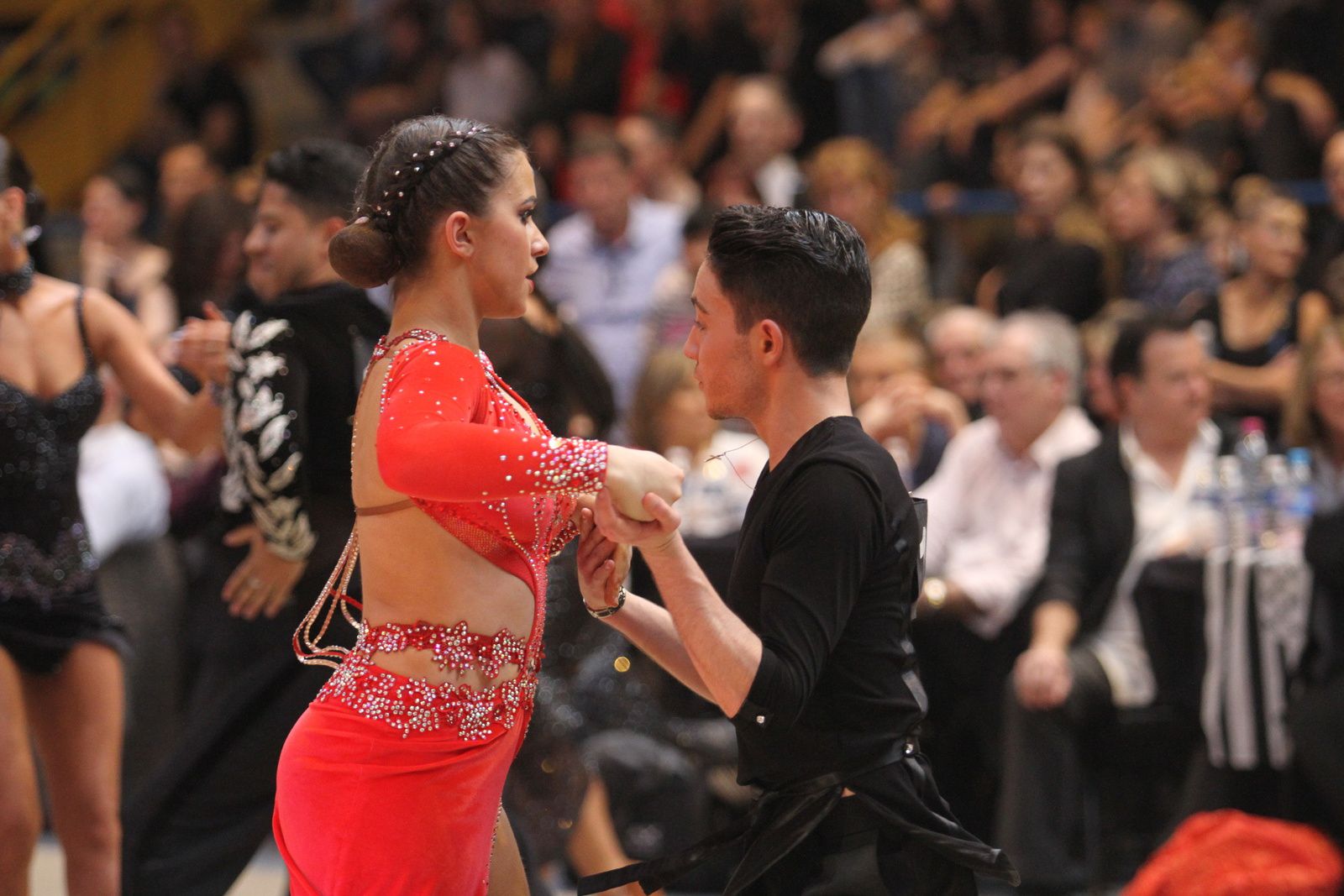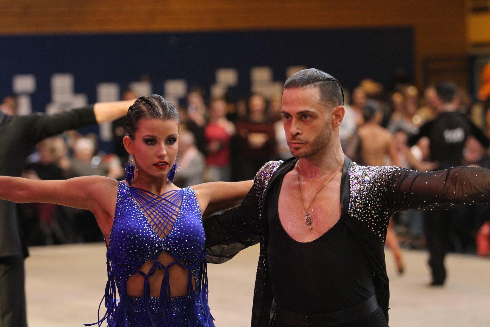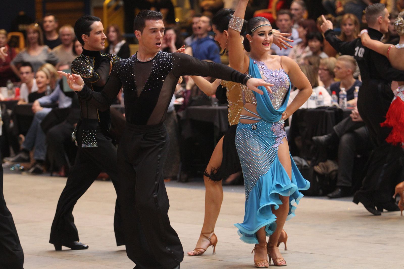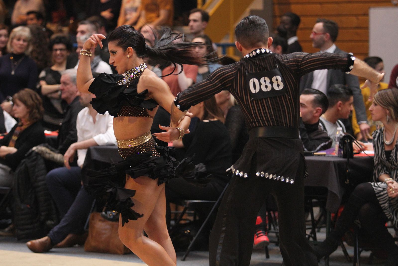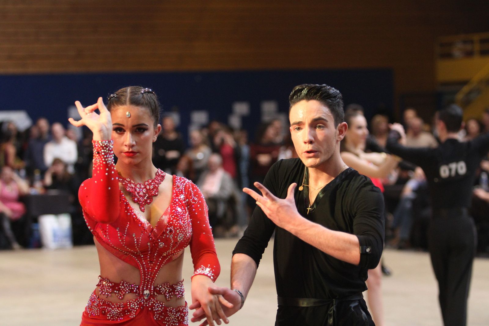 Il y avait foule ce samedi au gymnase Jacques Anquetil pour l’étape vénissiane de Coupe de France de danse sportive. 400 danseurs et deux fois plus d’accompagnateurs ont fait comme ils ont pu pour se frayer une place dans la tribune et aux alentours d’un immense parquet en bois installé par les organisateurs. Pour ce qui concerne la compétition, elle aura été acharnée. Il faut dire que de nombreux champions de France des catégories youth, juniors, espoirs, adultes et seniors étaient présents. D’où la difficulté à se qualifier pour les 6 finalistes de chaque discipline et deux types de danses : latines et standards. Dans cette épreuve nationale magnifiquement organisée par Lyon Métropole Danse Sportive, le cha-cha-cha insouciant, euphorique samba, rumba torride, paso-doble passion et l’énergique jive ont permis au couple vénissian Stéphano Guijarro et Jennifer Meunier de s’imposer en seniors danses latines. Pour info Stéphane Guijarro est le nouveau président de LMDS. Autres finalistes en juniors standards : Gabriel Boguta et Fantine Noyel qui finissent 6ème. D’autres danseurs locaux se sont illustrés sans toutefois se qualifier pour les finales. Thomas Vernay et Laure Galy finissent aux portes de la finale à la 7ème place. En juniors latines : Maxence Piau et Juliette Rey (la fille de l’entraîneur Christophe Rey) se classent 7ème. Les espoirs en latines Pierre Mauduy et Justine Iafrate terminent 9ème.