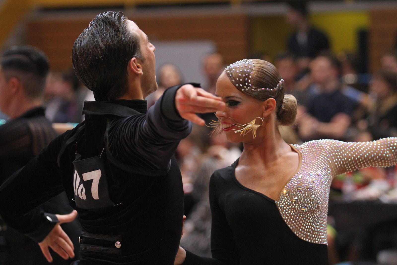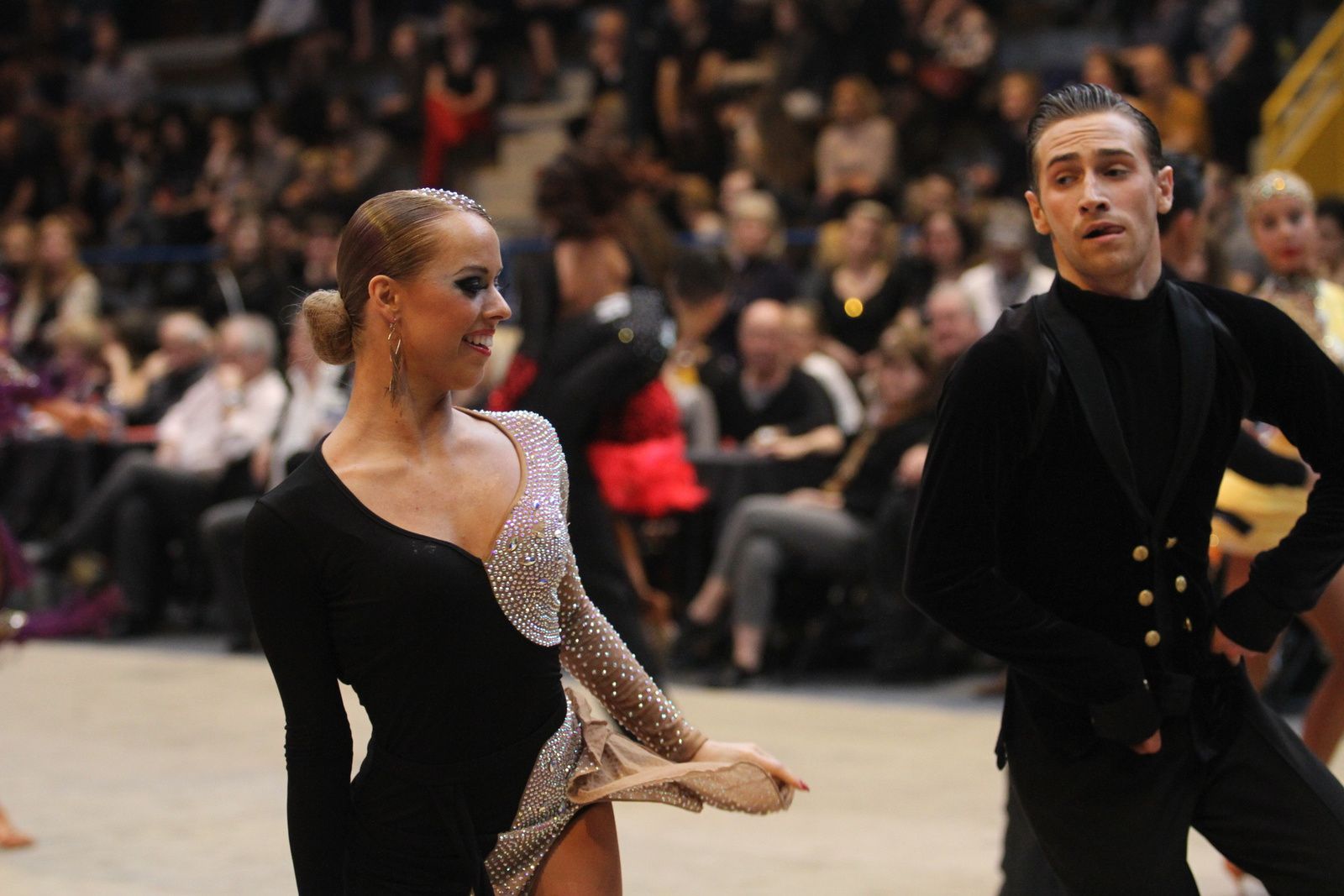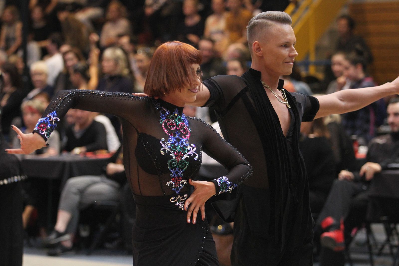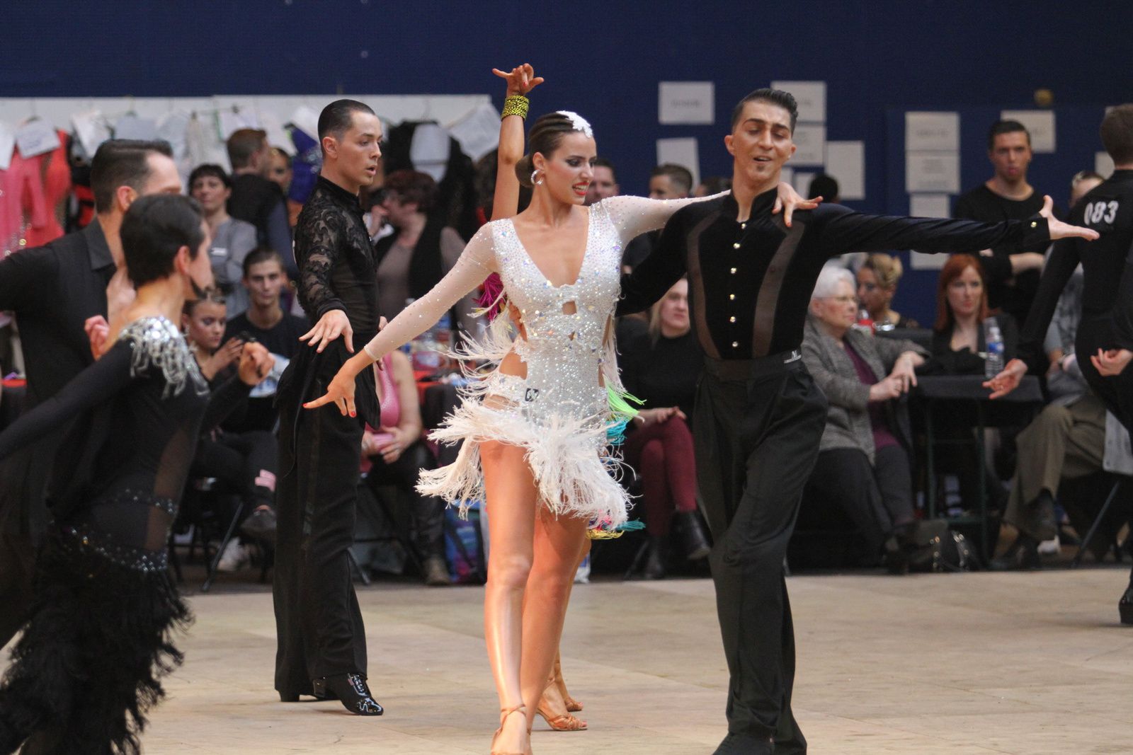 Il y avait foule ce samedi au gymnase Jacques Anquetil pour l’étape vénissiane de Coupe de France de danse sportive. 400 danseurs et deux fois plus d’accompagnateurs ont fait comme ils ont pu pour se frayer une place dans la tribune et aux alentours d’un immense parquet en bois installé par les organisateurs. Pour ce qui concerne la compétition, elle aura été acharnée. Il faut dire que de nombreux champions de France des catégories youth, juniors, espoirs, adultes et seniors étaient présents. D’où la difficulté à se qualifier pour les 6 finalistes de chaque discipline et deux types de danses : latines et standards. Dans cette épreuve nationale magnifiquement organisée par Lyon Métropole Danse Sportive, le cha-cha-cha insouciant, euphorique samba, rumba torride, paso-doble passion et l’énergique jive ont permis au couple vénissian Stéphano Guijarro et Jennifer Meunier de s’imposer en seniors danses latines. Pour info Stéphane Guijarro est le nouveau président de LMDS. Autres finalistes en juniors standards : Gabriel Boguta et Fantine Noyel qui finissent 6ème. D’autres danseurs locaux se sont illustrés sans toutefois se qualifier pour les finales. Thomas Vernay et Laure Galy finissent aux portes de la finale à la 7ème place. En juniors latines : Maxence Piau et Juliette Rey (la fille de l’entraîneur Christophe Rey) se classent 7ème. Les espoirs en latines Pierre Mauduy et Justine Iafrate terminent 9ème.