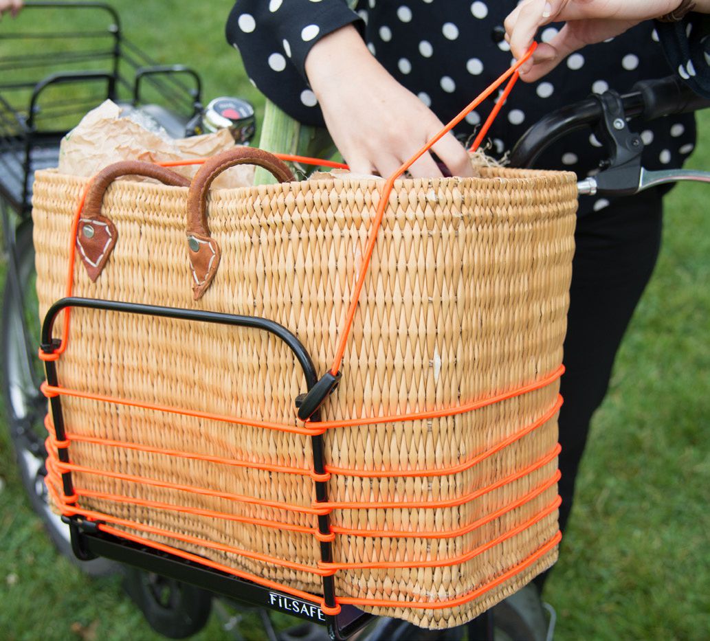 Le concept de modularité et géométrie variable vient des cordages élastiques tressés sur mesure et enroulés autour d’une structure métallique robuste recouverte d’époxy. Cette élasticité permet d’adapter le panier aux objets à transporter quels que soit leur volume, forme, taille ou fragilité. A chaque extrémité un crochet mousqueton permet de tendre, maintenir, fixer, enrouler, étirer le cordage selon les besoins. Il est aussi facile d’y faire tenir une valise cabine, un parapluie que de maintenir une bouteille en verre ou un ordinateur.
